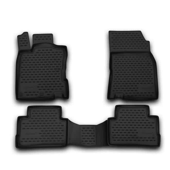 Gummimåtter i 3D-design, som beskytter bilens originale tæppe. Praktiske detaljer som beskyttelse af fodhviler og kardantunnel.