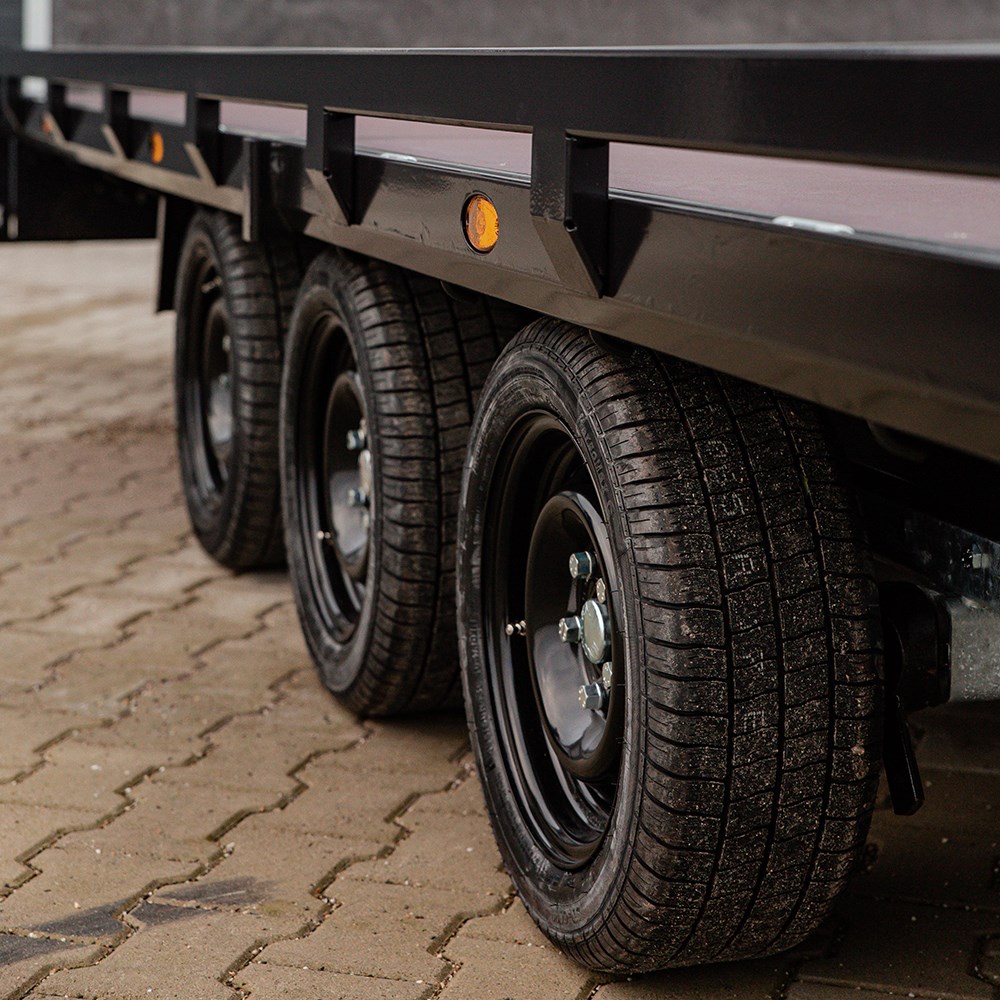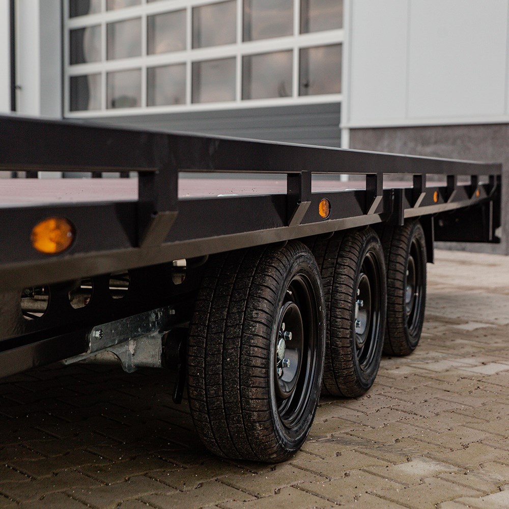 Traileren er treakslet og kører med aksler og komponenter fra Knott. Akslerne er 1500 kilos-versioner alle tre og er derfor solidt dimensioneret til mange års trofast brug.
