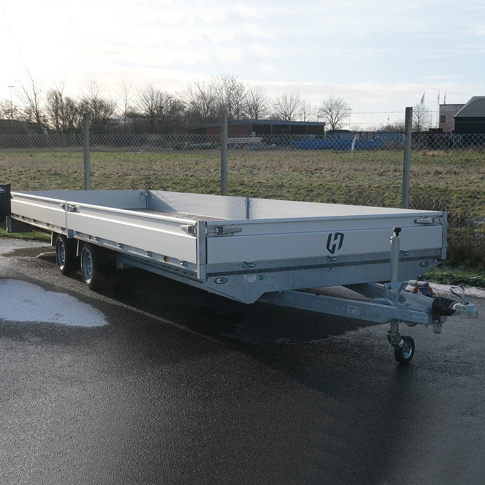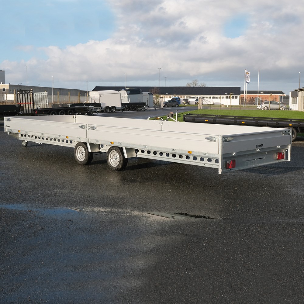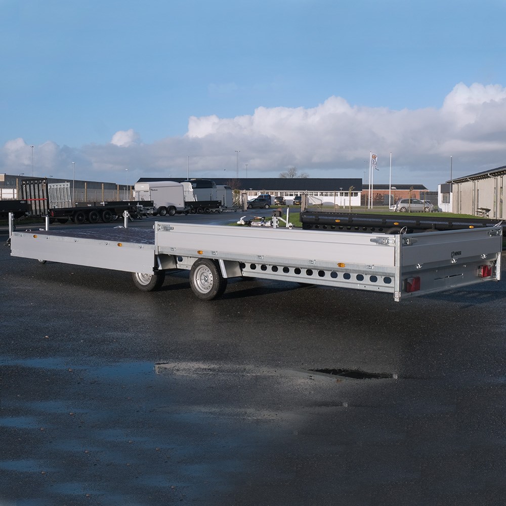 Denne PL357022 er med det enorme lad en af de største platformtrailere fra Henra. Her får du den største længde i sortimentet, nemlig 703 cm, men med en lidt smallere bredde end den større PL357024-model.