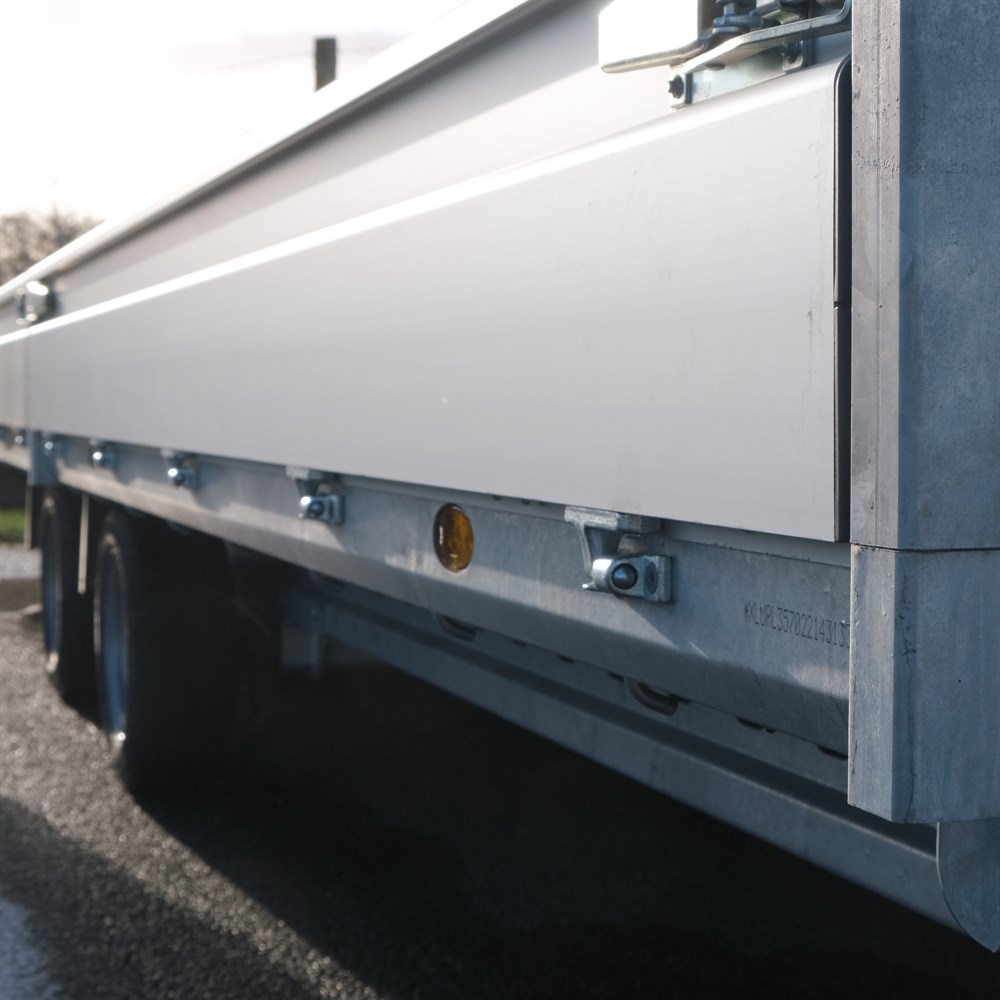 Traileren leveres med masser af godt udstyr, og du får en trailer, som er nem og effektiv at læsse. Alle sider kan nedfældes, hjørnestolperne afmonteres - og derudover får du naturligvis udvendige surringskroge til fastgørelse af net samt indbyggede, nedfældelige surringsøjer i trailerens gulv.