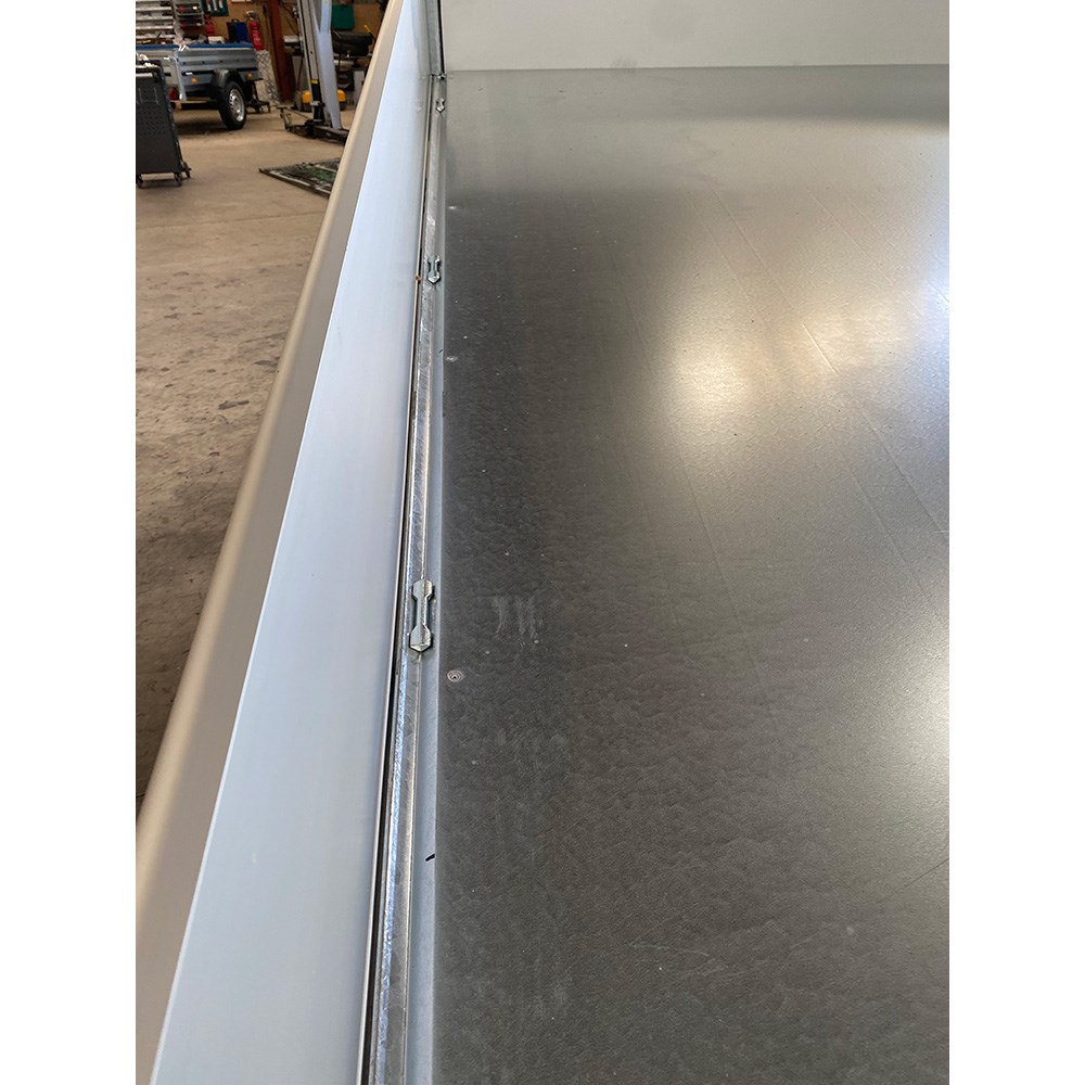 Traileren har et robust stålbelagt lad. Ladet er lavet af 18 mm træ og er dækket af en stærk stålplade, der beskytter mod slid når du transporterer løse materialer.