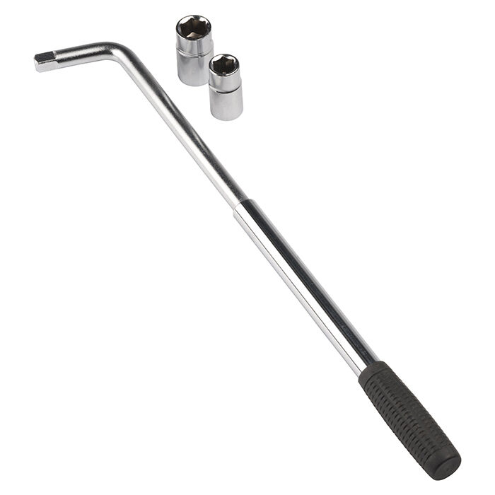 Hjulnøgle 17/19 og 21/23 mm. Hjulnøgle med 2 vendbare toppe 17/19 mm og 21/23 mm. Teleskop model. Fremstillet i chrome vanadium stål med gummibelagt håndtag, som giver et godt greb. TÜV godkendt.
