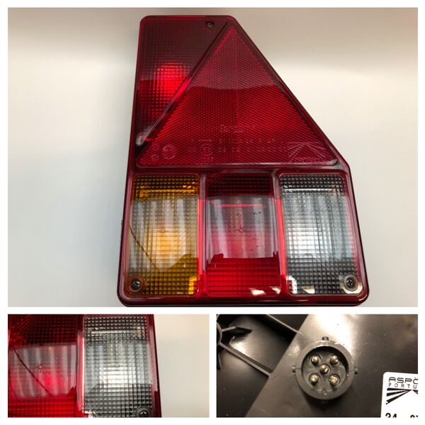 • Højre baglygte med henholdsvis blinklys, bremselys, baglys, baklys og trekantsrefleks