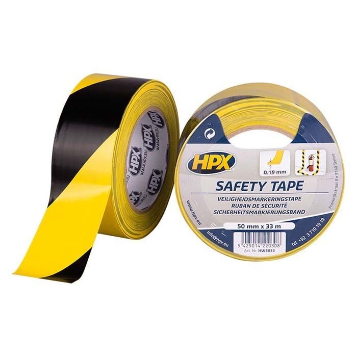 HPX sikkerhedstape gul/sort selvklæbende 50mm x 33m