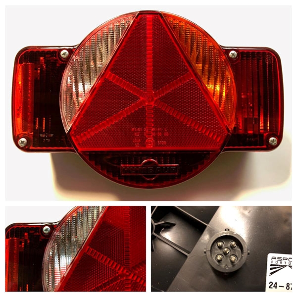 Højre baglygte til trailer med nummerpladelys, baglys, bremselys, blinklys og baklys.