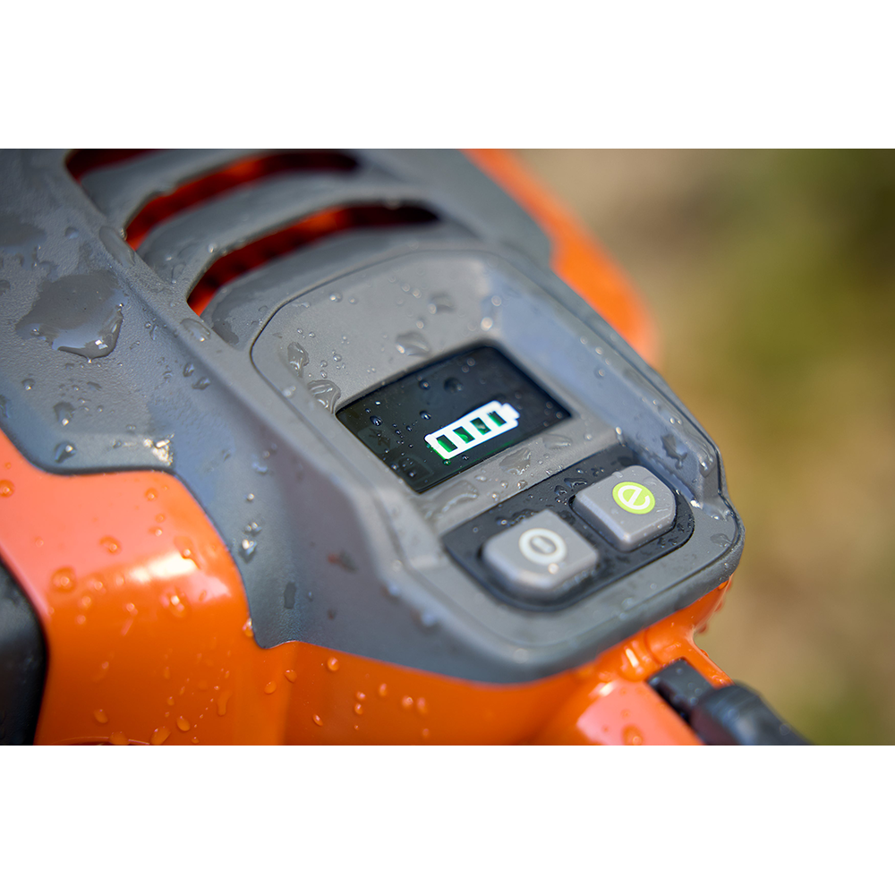 Det brugervenlige tastatur gør det nemt at starte og stoppe motorsaven samt kontrollere batteristatus og fejlindikationer med et enkelt tryk. SavE™-funktionen forlænger driftstiden ved opgaver, der ikke kræver fuld kraft. Batteriet kan nemt fjernes til opladning, samtidig med at risikoen for ophobning af støv og træspåner minimeres. Husqvarnas fleksible 36V BLi-X-system gør det muligt at bruge det samme batteri til flere andre Husqvarna-værktøjer, hvilket øger fleksibilitet og effektivitet i haven.