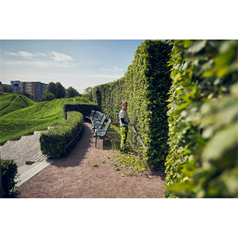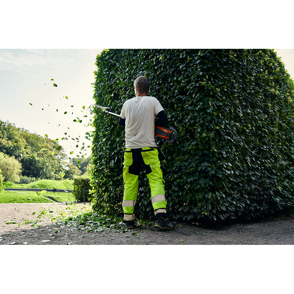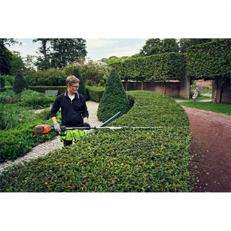 Den børsteløse E-TORQ™-motor er udviklet af Husqvarna til professionel brug og er optimeret til høj effektivitet og lang levetid. Det slanke og velafbalancerede design gør det muligt at arbejde komfortabelt i alle situationer, samtidig med at motoren kræver minimal vedligeholdelse. IPX4-klassificeringen gør hækkeklipperen vejrbestandig, så du kan arbejde sikkert i regn og fugtige forhold. Integrerede tilslutningsmuligheder giver desuden nem forbindelse til Husqvarna Fleet Services™ for overvågning og styring af maskinen.