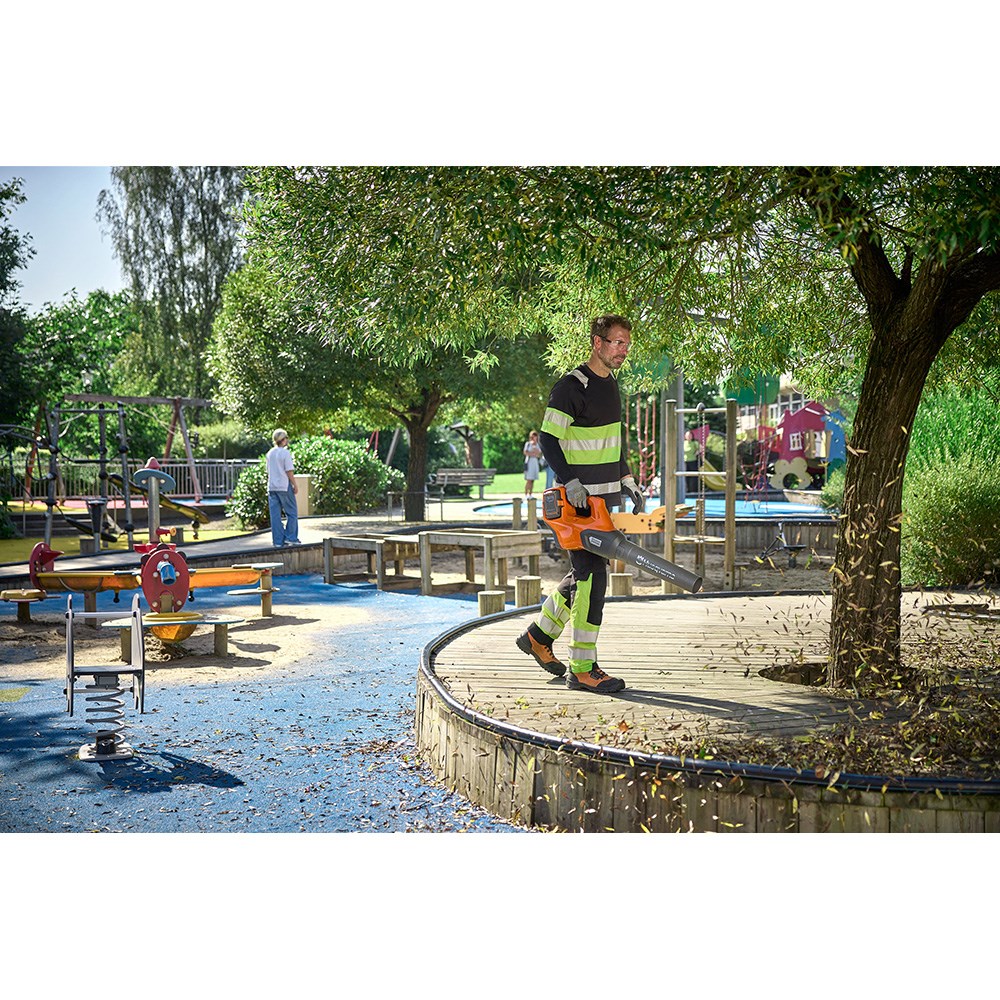 Husqvarna 530iB er ikke blot kraftfuld – den er også komfortabel at arbejde med. Takket være det lave støjniveau, den gode balance og det ergonomiske design kan du bruge løvblæseren i længere tid uden at blive træt. Enheden er kompatibel med Husqvarnas fleksible BLi-X 36V batterisystem, hvilket giver dig mulighed for at bruge samme batteri til flere maskiner i serien. Bemærk, at batteri og oplader sælges separat.