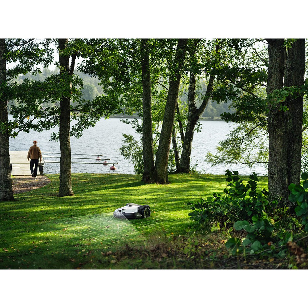Den patenterede, ikke-faste frontaksel forbedrer manøvredygtigheden markant og sikrer fremragende ydeevne på ujævne underlag. Robotten klarer skråninger med hældning på op til 50 %, hvilket gør den ideel til komplekse haver og kuperet terræn.