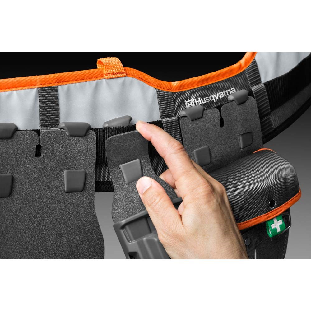Den praktiske bærekrog kan du nemt og hurtigt klikke på dit Flexi-værktøjsbælte fra Husqvarna.