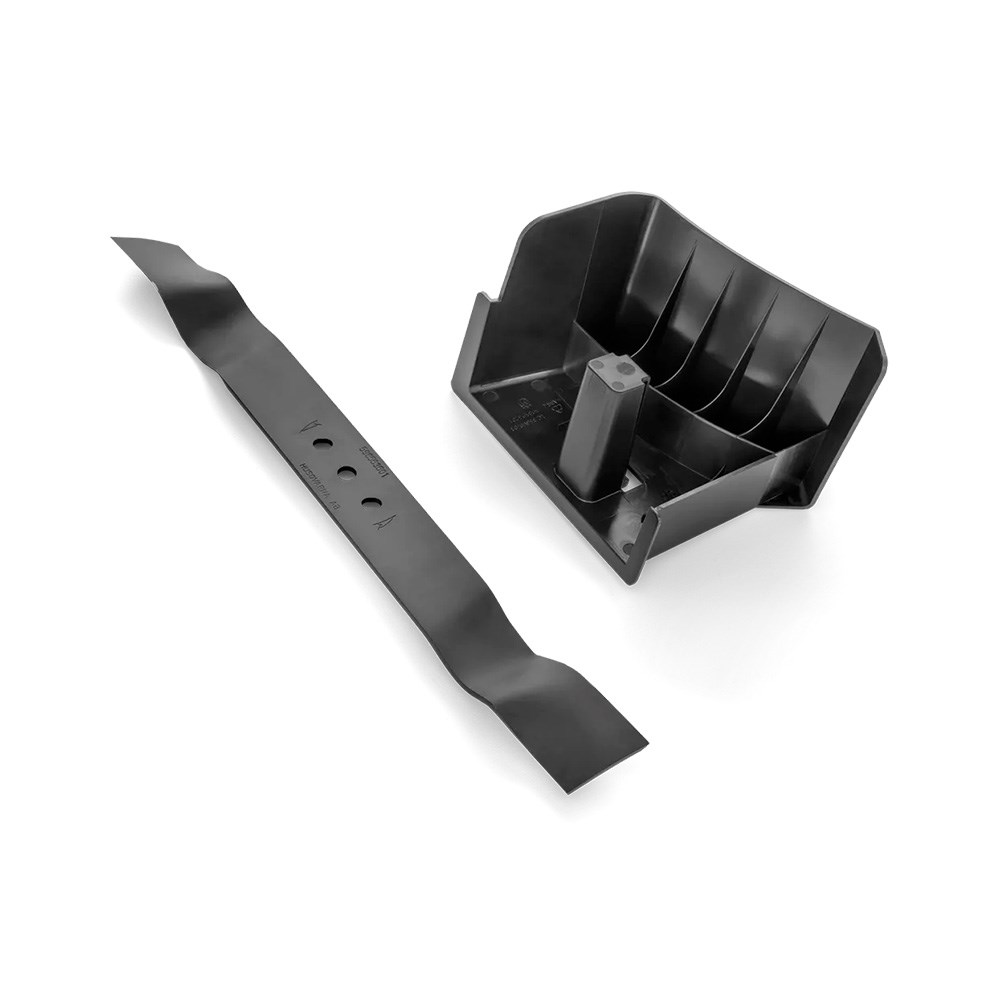 Til konvertering til BioClip-skæringstilstand (findeling). Med dette sæt kan græsset klippes i små stykker, der hurtigt nedbrydes og sendes tilbage til plænen som gødning og er med til at gøre plænen mere tørkeresistent. Sættet indeholder BioClip-prop og klinge.