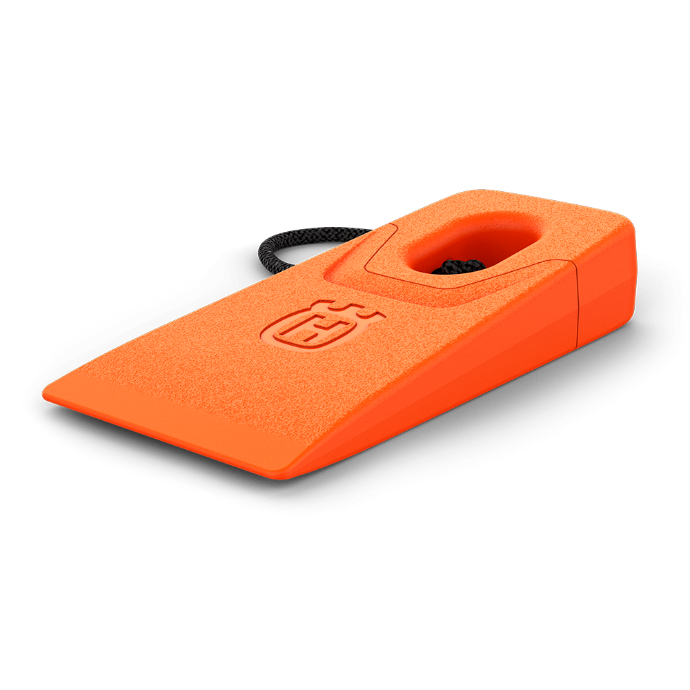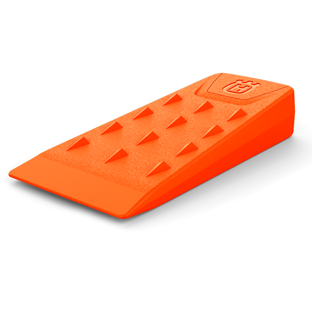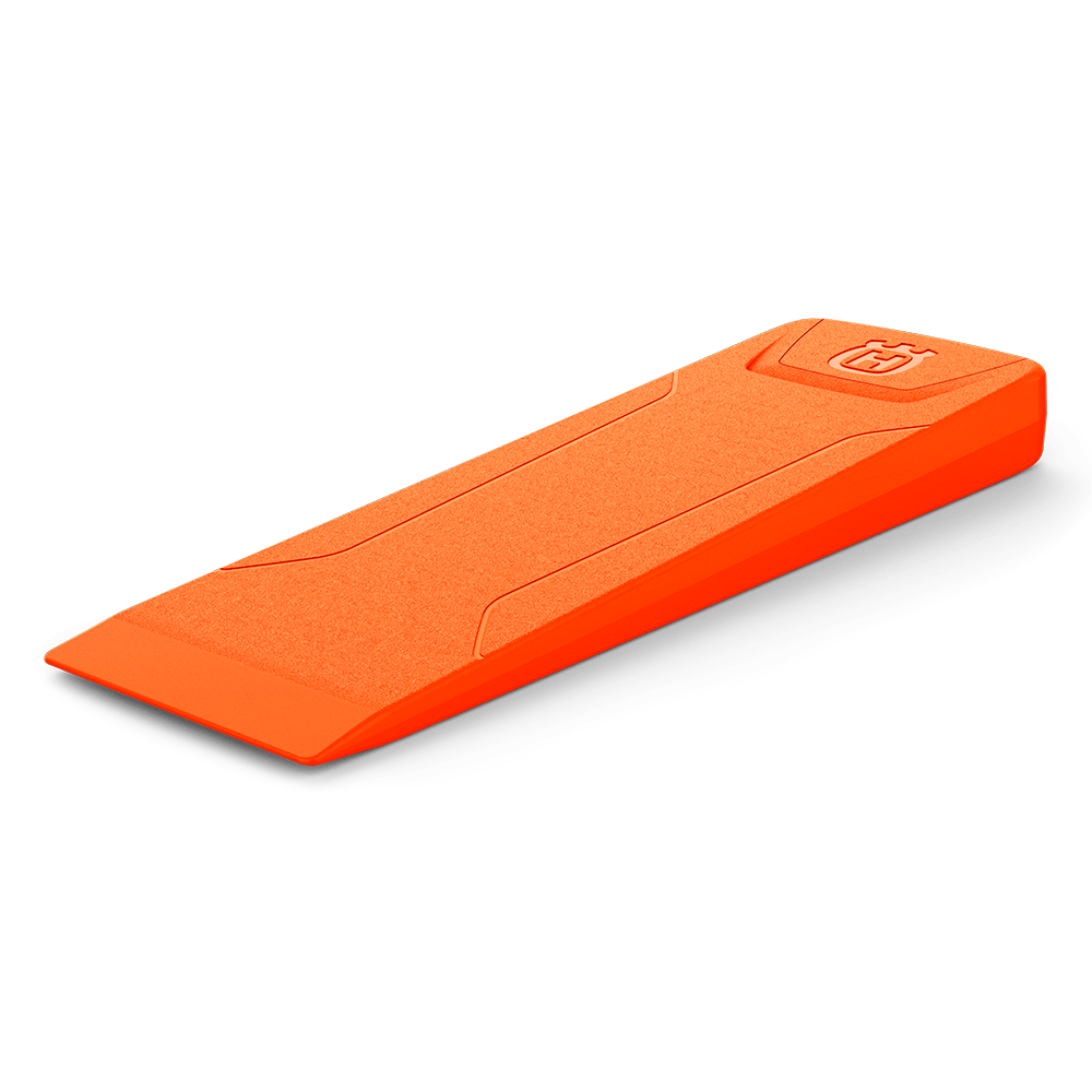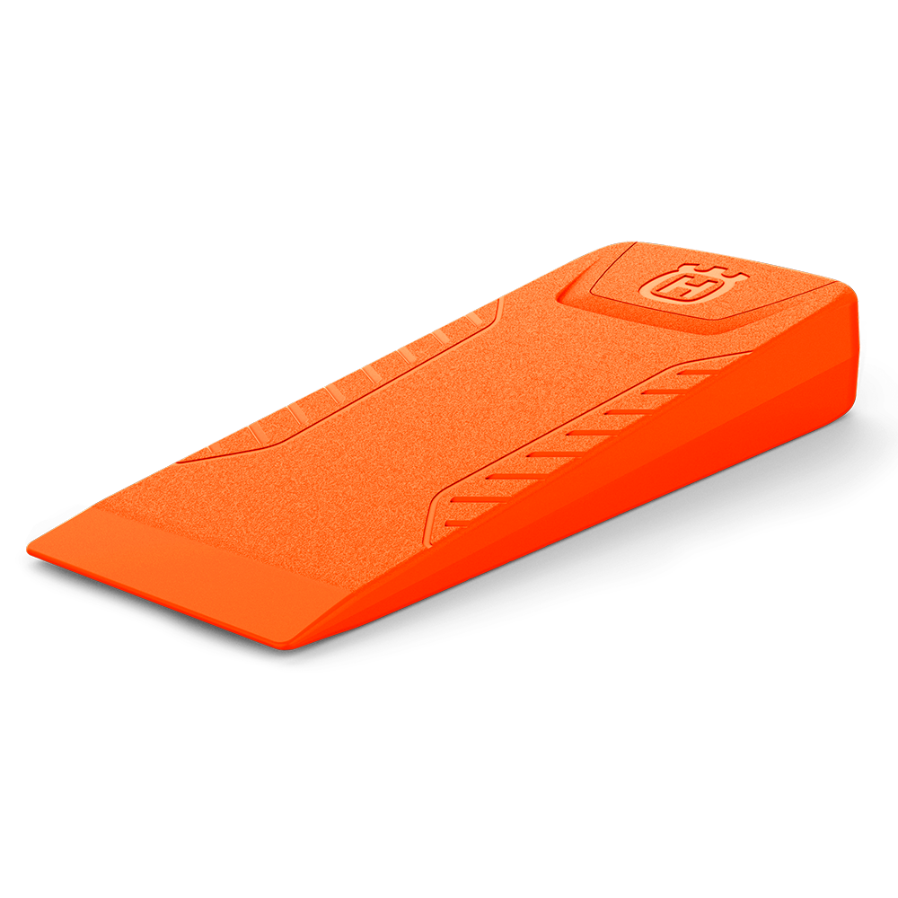 Fældekiler fra Husqvarna findes i to varianter - i plast og i aluminium. Denne serie af fældekiler i plast har indbyggede modhold for at modvirke, at kilen presses ud af træet.