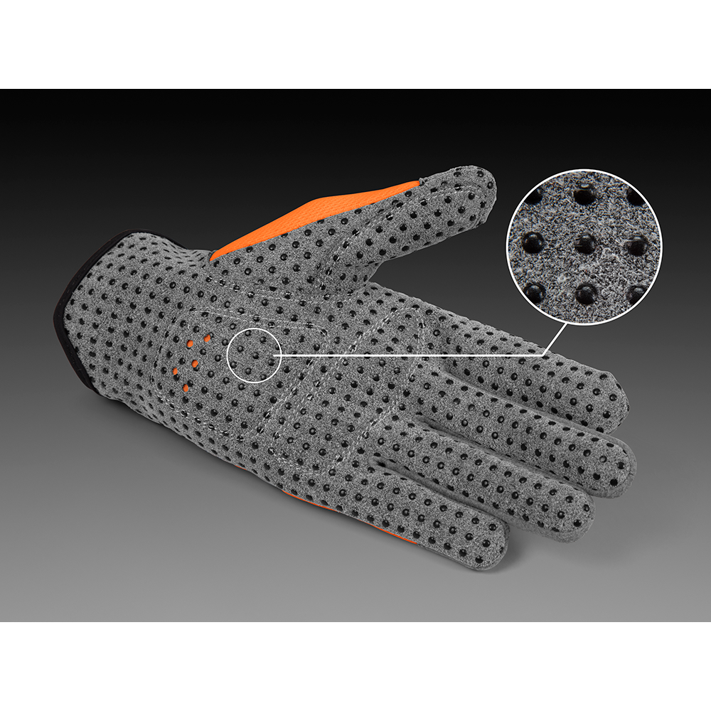 Handskerne er produceret med en håndflade af en åndbar og hurtigttørrende type syntetisk læder, mens oversiden også har til formål at kombinere komfort og god ventilation i én og samme handske.