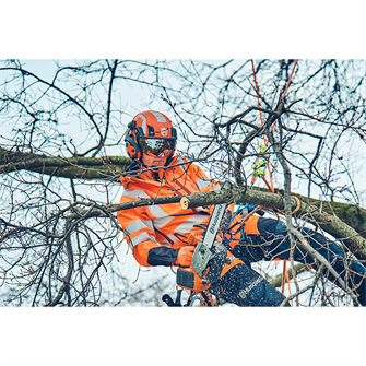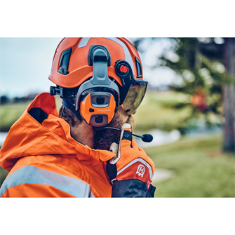 Husqvarna X-COM Active kombinerer effektiv høreværnsbeskyttelse med et krystalklart fuld duplex-intercom-system, så op til 10 personer kan kommunikere samtidig – perfekt til krævende træplejearbejde.