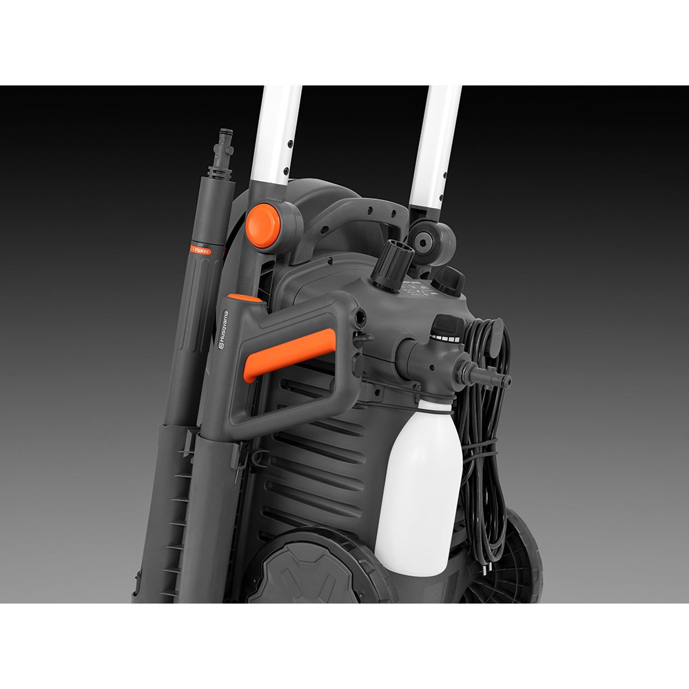 PW 360 er udstyret med en sprøjtepistol, der kræver minimal kraftanvendelse, samt et foldbart aluminiumshåndtag, som reducerer pladsbehovet under opbevaring.