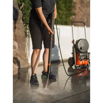 PW 360 er udstyret med den nye 3-i-1 Multi-Lance, der giver dig mulighed for at skifte mellem forskellige dyser med ét enkelt klik. Uanset om du skal fjerne hårdnakket snavs eller blot skylle overflader, er det hurtigt og nemt at justere.