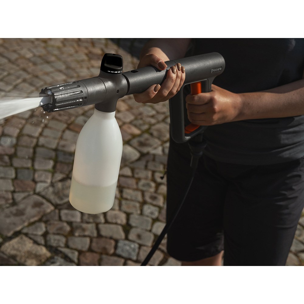 Den lange, fleksible slange sikrer større rækkevidde og nem betjening, mens den opgraderede førsteklasses skumsprøjte leverer en forbedret skumdannelse og giver mulighed for at justere blæseren, så du opnår præcis den effekt, du har brug for.