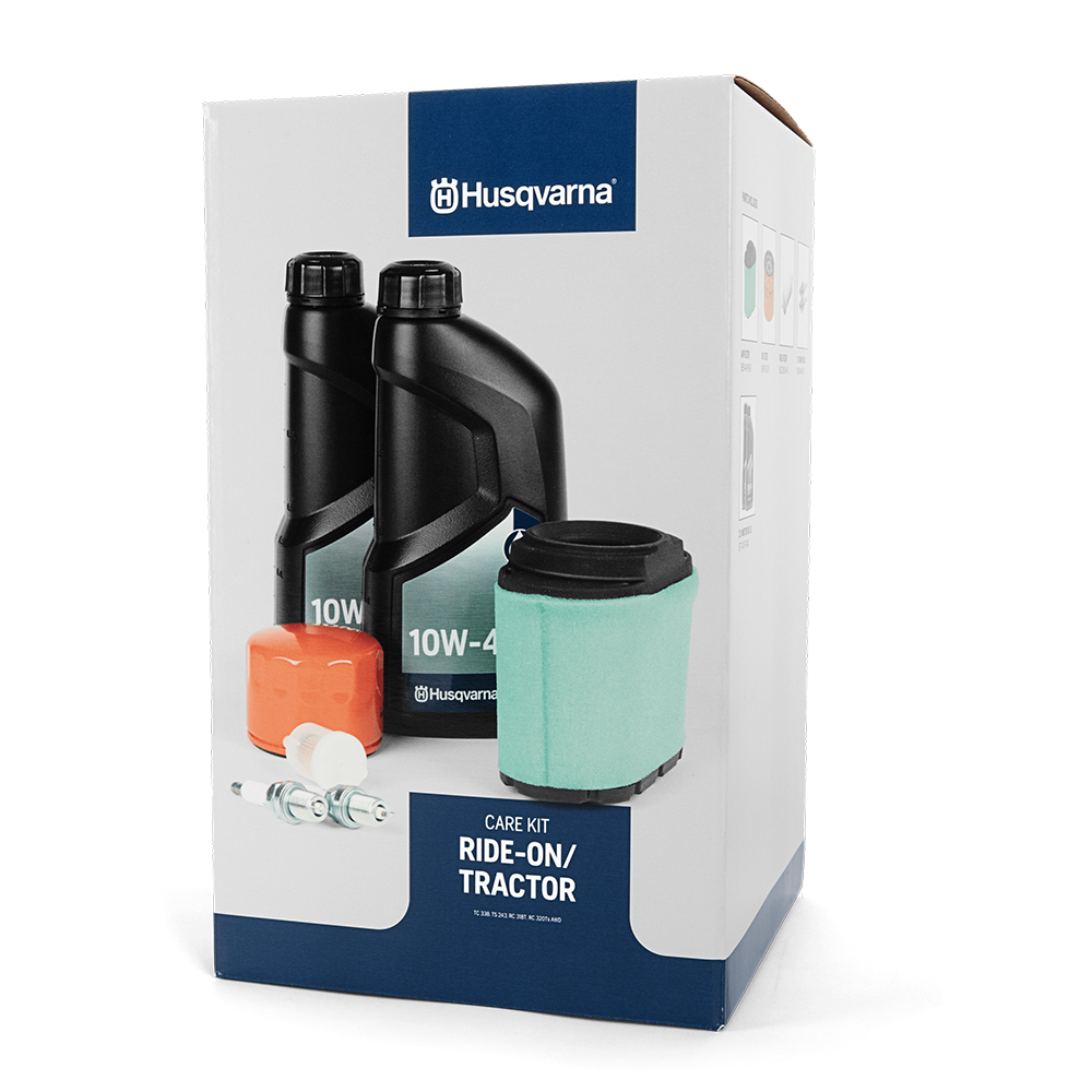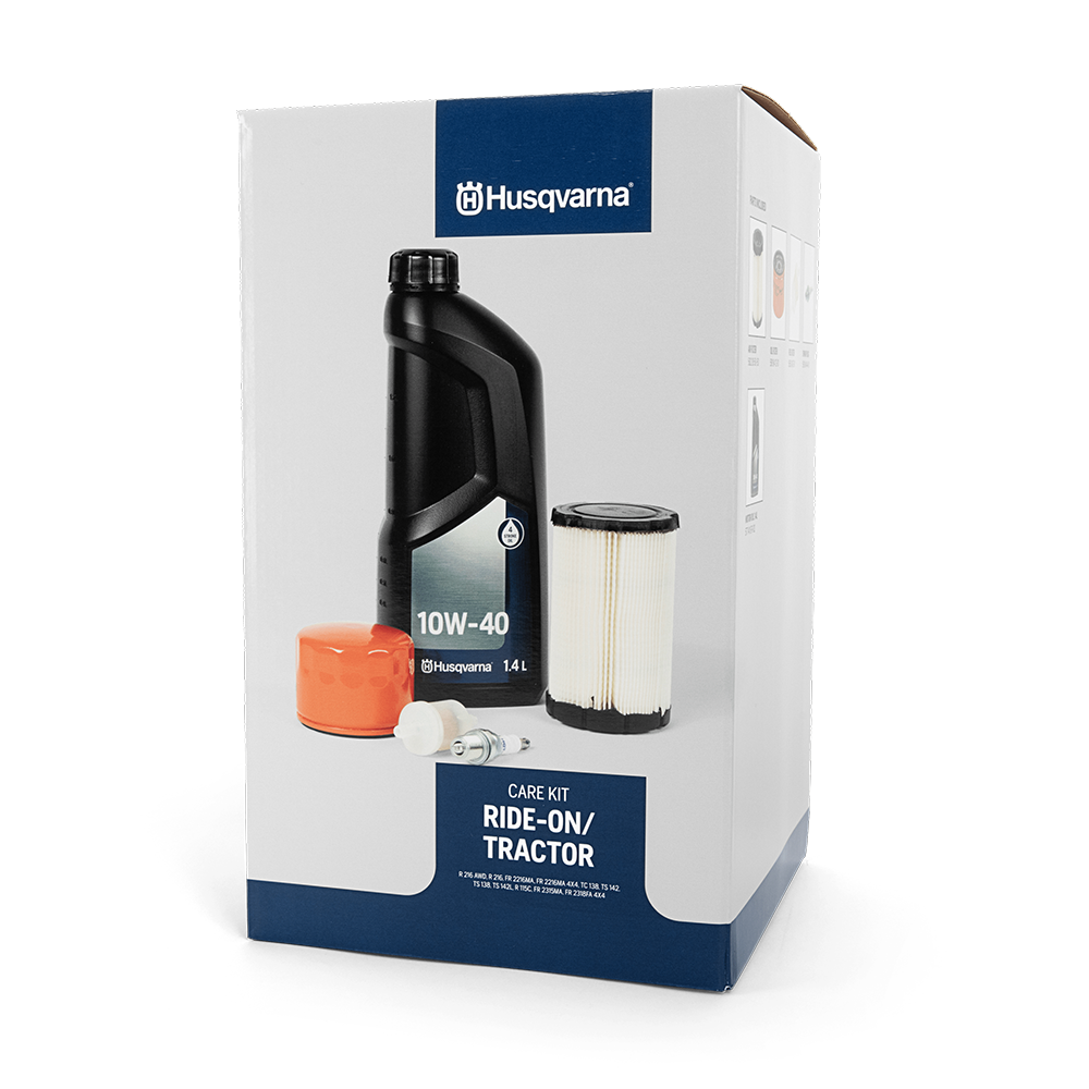 For med Husqvarnas nye servicepakker får du alt, hvad du skal bruge for at kunne få din maskine tilbage i topform med originale (OEM) Husqvarna-filtre, de rette tændrør og Husqvarnas egen, anbefalede motorolie.