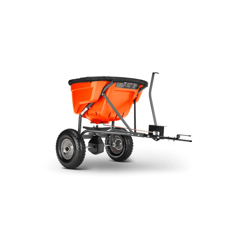 Store luftfyldte dæk giver optimal manøvredygtighed, og det slidstærke nylonbetræk beskytter mod elementerne. Denne alsidige spreder er ideel til spredning af gødning og frø i haven samt til issmeltning om vinteren.