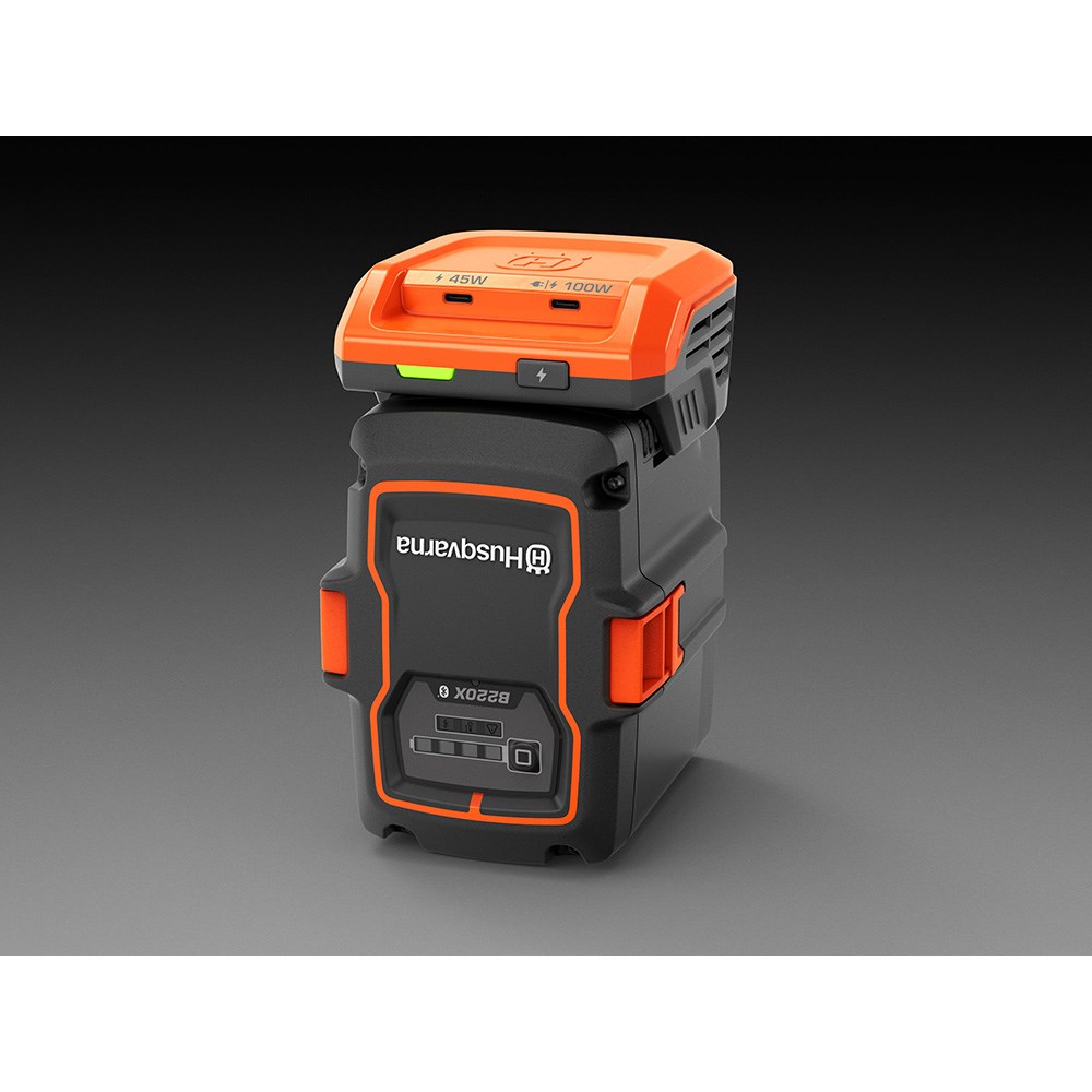 Den smarte tovejsfunktion gør det muligt ikke kun at bruge batteriet som en powerbank, men også at oplade Husqvarna BLi-X 36 V-batteriet direkte via en USB-C-vægoplader, powerbank eller endda en solcelleoplader.