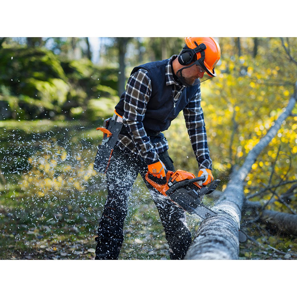 Husqvarna 445S bygger på den gennemtestede 400-serie og er forbedret med et endnu mere robust design, som forlænger savens levetid. Den er udviklet med praktiske detaljer som fastgjort sværdmøtrik og farvede fældemarkeringer, der øger både præcision og sikkerhed under arbejdet.