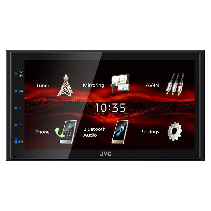 JVC KW-M180BT er en avanceret 2-DIN bilradio med en imponerende 6.8" WVGA kapacitiv touchskærm. Den integrerer Bluetooth(R) trådløs teknologi for hands-free opkald og musikstreaming. Med understøttelse af Android USB Mirroring kan du problemfrit vise og styre din smartphone på den store skærm. Den korte krop på kun 75 mm gør installationen let i et bredt udvalg af køretøjer.