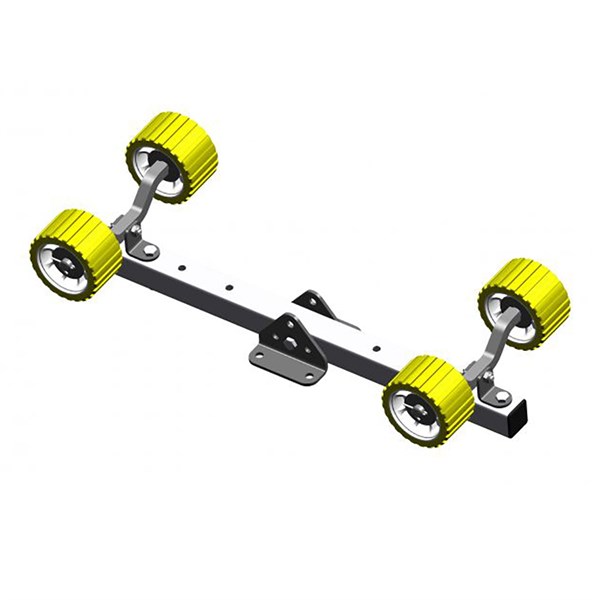 Knotts smarte 5" sideruller kan også købes som et komplet setup á fire, som er lige til at skrue på traileren - inklusive konsol. Det får du her - og konsollen sikrer god støtte til din båd, og findes i tre farver, nemlig blå, sort og gul.