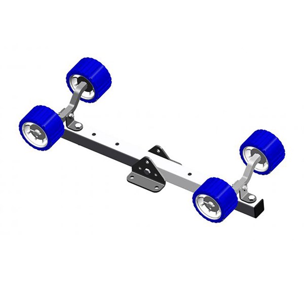 Knotts smarte 5" sideruller kan også købes som et komplet setup á fire, som er lige til at skrue på traileren - inklusive konsol. Det får du her - og konsollen sikrer god støtte til din båd, og findes i tre farver, nemlig blå, sort og gul.