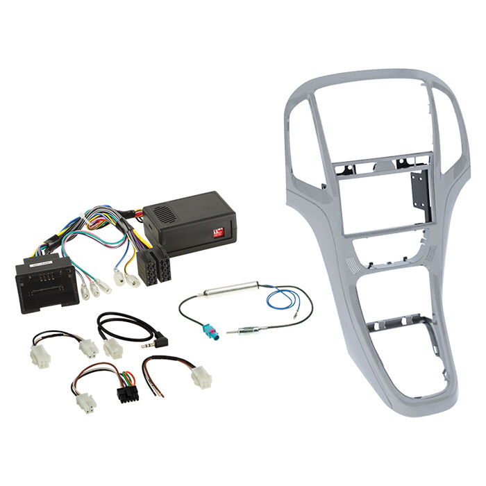 Komplet 2-DIN Kit Opel Astra J 2009-2018 platin sølv /L – radioramme, CAN-Bus interface og ratbetjeningsadapter i ét sæt