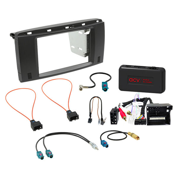 Komplet 2-DIN Kit Mercedes R-Klasse 09/2005-05/2010 /Amp – facia, beslag og tilslutningskit til eftermontering