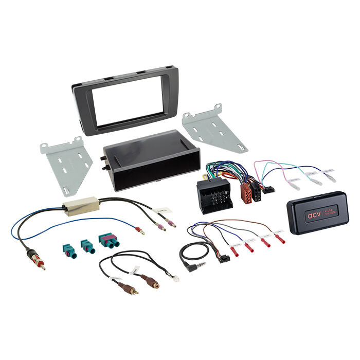 Installationskits inkluderer alle nødvendige komponenter til udskiftning af en OEM HU. Afhængigt af bilens udstyr er alle adaptere og interfaces, som er nødvendige for at drive retrofit-enheden og gendanne bilfunktioner, inkluderet i leveringsomfanget.