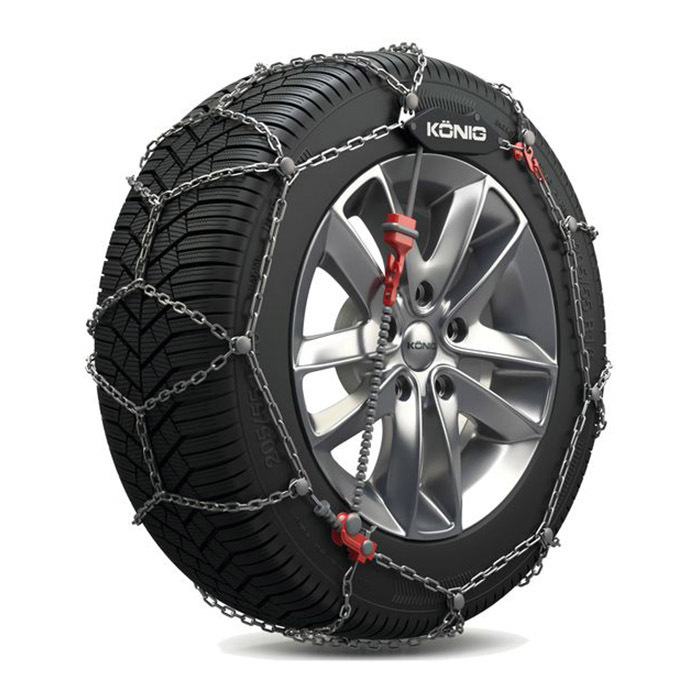Snekæden er selvspændende, med kun et stop er kæden nem at samle. Mikroreguleringssystemet sikrer perfekt spænding af kæden. Når først snekæden er monteret på hjulet, kræver den ikke noget ekstra stop for efterspænding. Tværsnittet af König CG-9 er fremstillet i enkle lige led for at maksimere balancen mellem præstationer og komfort. Kæden har en symmetrisk diamantmønsterkæde.