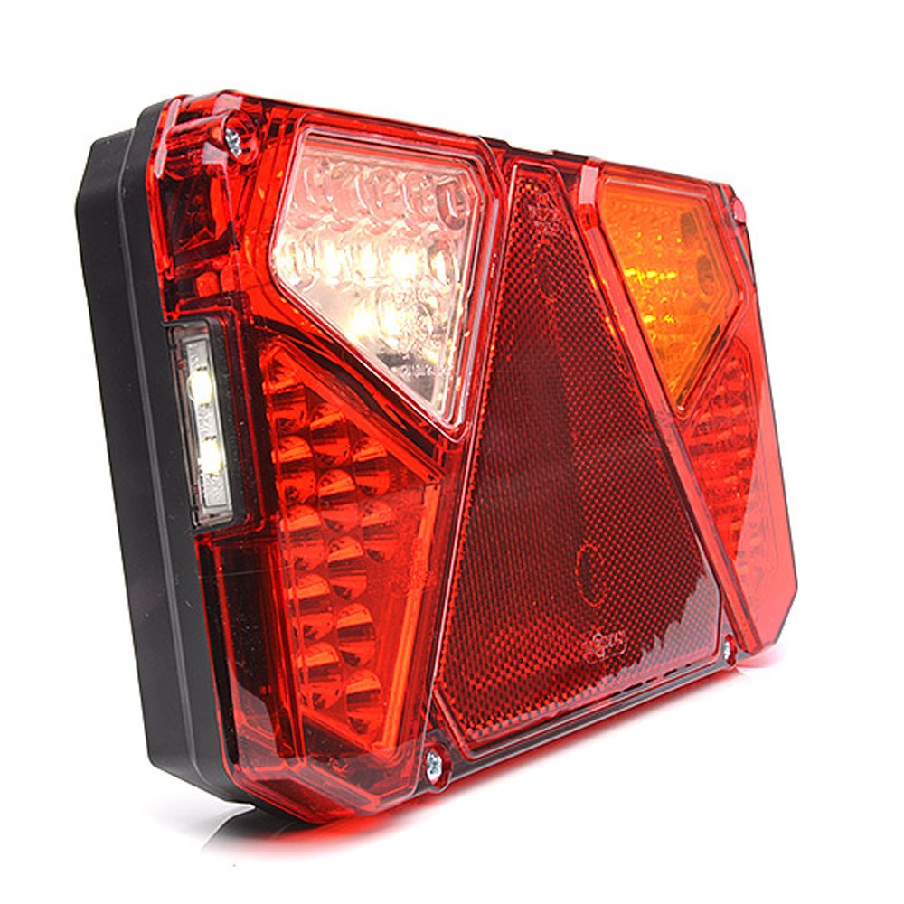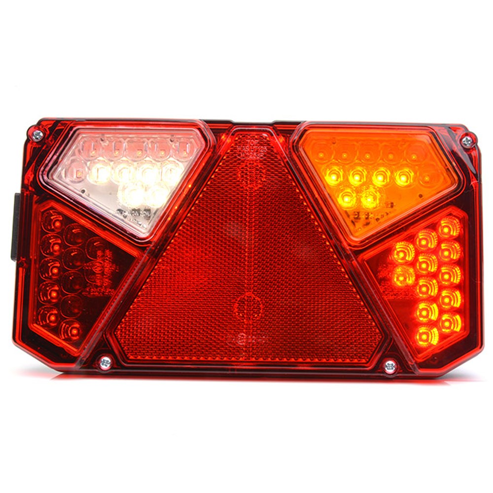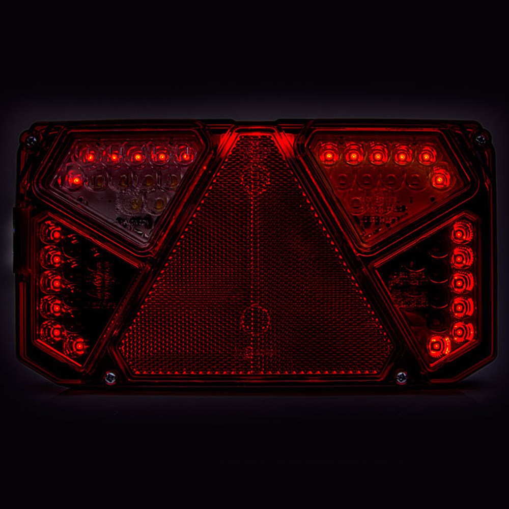 Alt-i-én LED-baglygte med positionslys, stoplys, blinklys, baklys, nummerpladelys samt trekantrefleks.