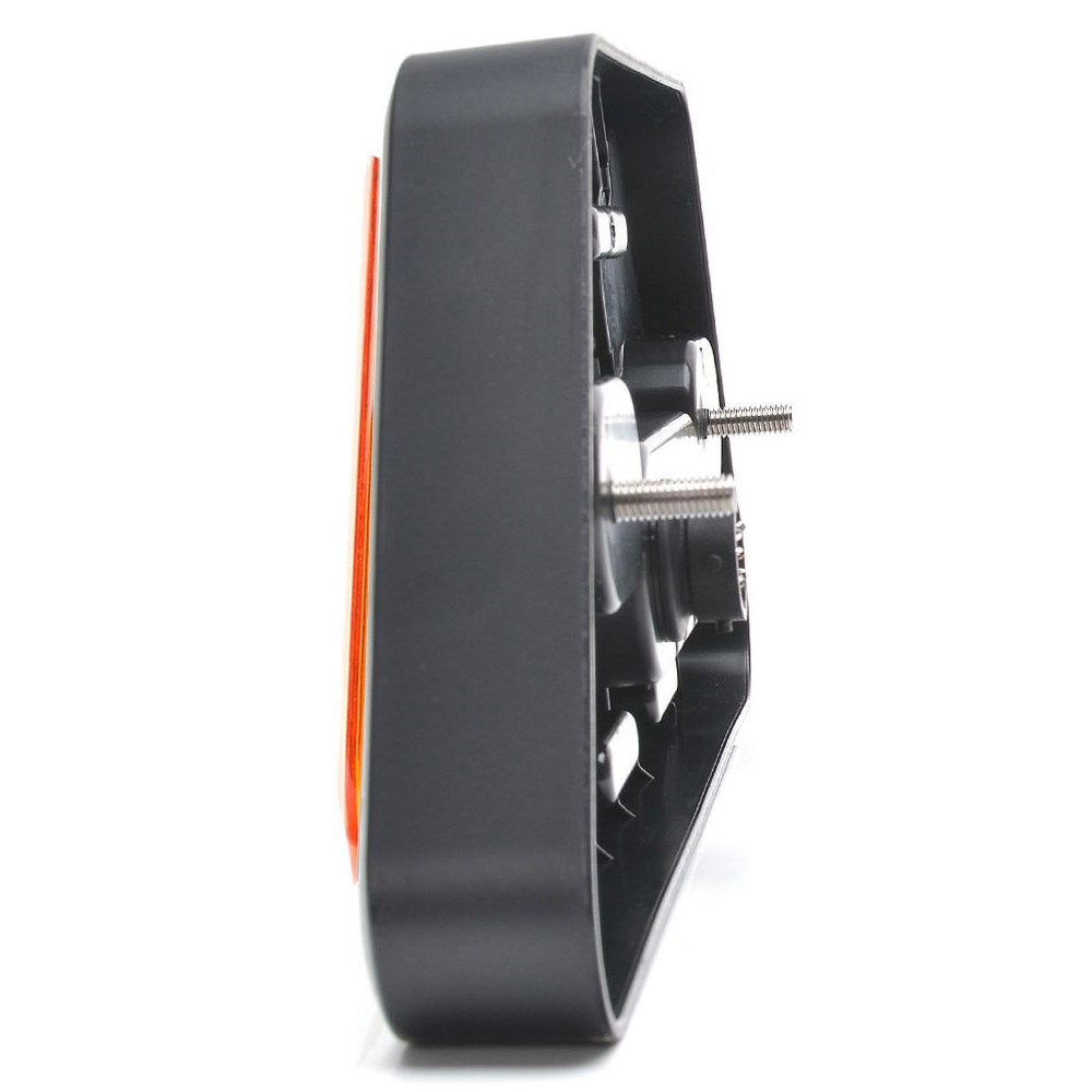 LED-baglygte i robust materiale med positionslys, stoplys, blinklys samt trekantrefleks.