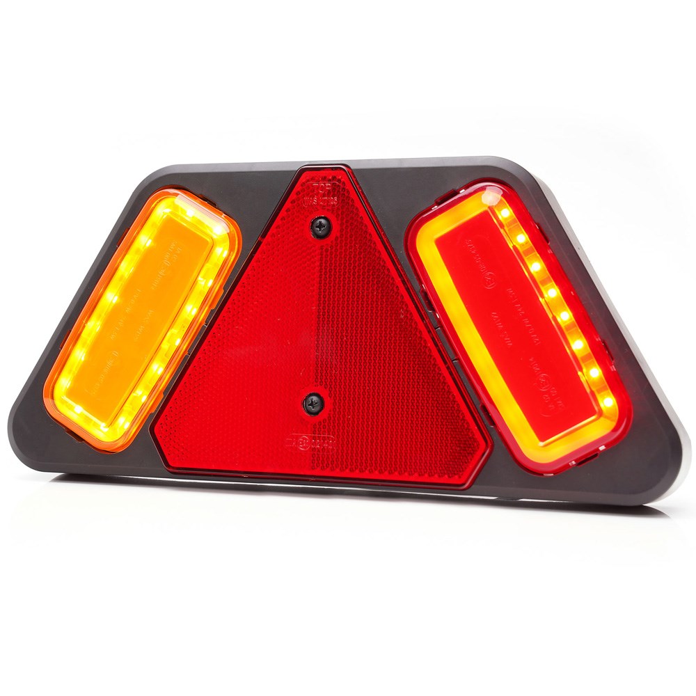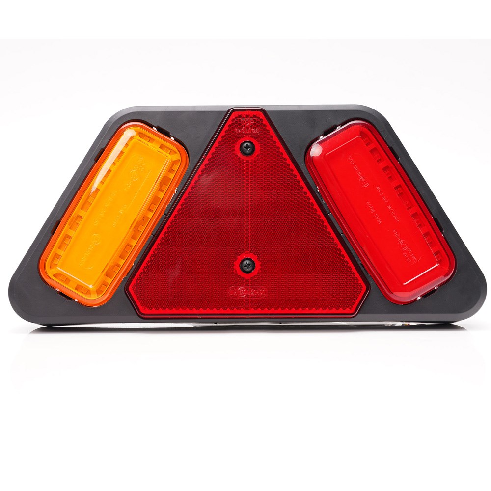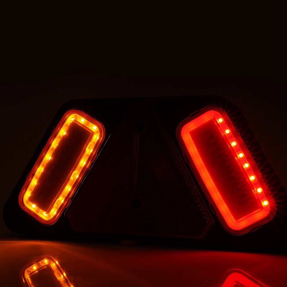 LED-baglygten indeholder positionslys, stoplys, blinklys samt trekantrefleks og er produceret i robust materiale.