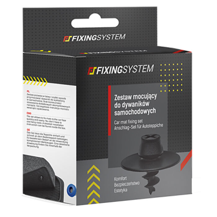Universal fastgørelsessæt der gør det nemt og hurtigt at fastgøre måtterne til bilens tæppe. Ingen behov for ekstra komplicerede værktøjer. Detaljeret monteringsvejledning findes i pakken.