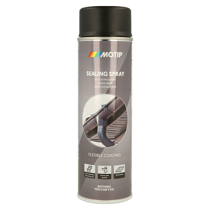 Forsegling Spray kan bruges både indendørs og udendørs og er derfor ideel til at forsegle små lækager og revner på tagrender, ventilationer, afløb og lignende. Motip Forsegling Spray er vejrbestandig, UV-resistent og kan overmales med forskellige malingssystemer.