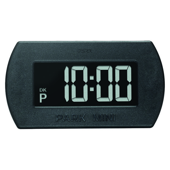 Park Mini er verdens mindste elektroniske parkeringsskive. Fylder minimalt i forruden, men er let at aflæse med de store digitale tal. Indefra er det ligeledes let at læse klokkeslæt, dato og parkeringstilstand, da displayet er vinklet rigtigt, og kontrastforholdet er perfekt.