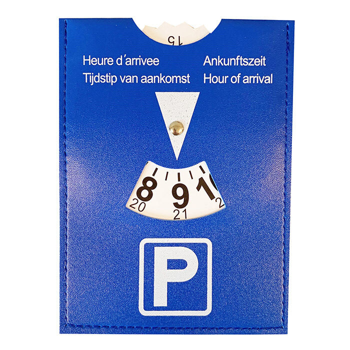 Praktisk parkeringsskive i lomme, som er nem at lægge op og tage ned fra forruden. P-skiven måler 15x11 cm og er blå med hvid skive og sorte tal.
