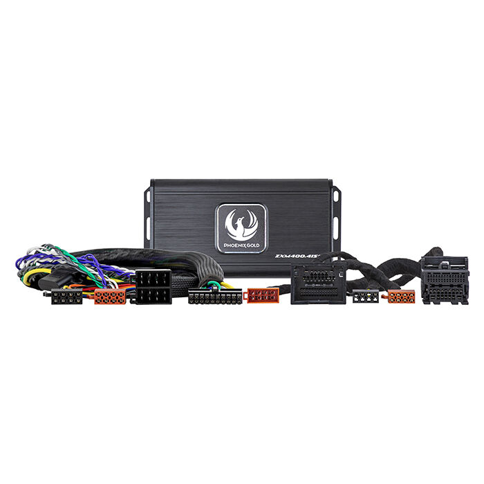 Systemets hjerte er Phoenix Gold ZXM400.4ISO, en kompakt 4-kanals Class D forstærker med 4 x 60 watt RMS. Den leverer væsentligt mere kraft og kontrol end standardanlægget.