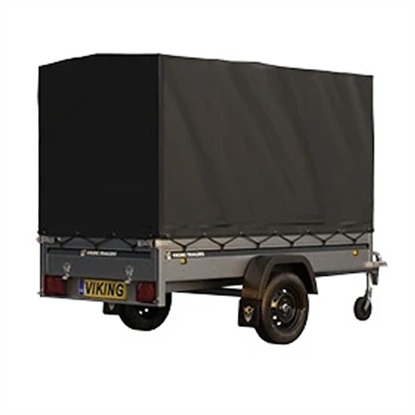 Presenningen er produceret i en ekstra kraftig og vejrbestandig kvalitet af danske Viking Trailer - 650 g/m². Farve: Sort.