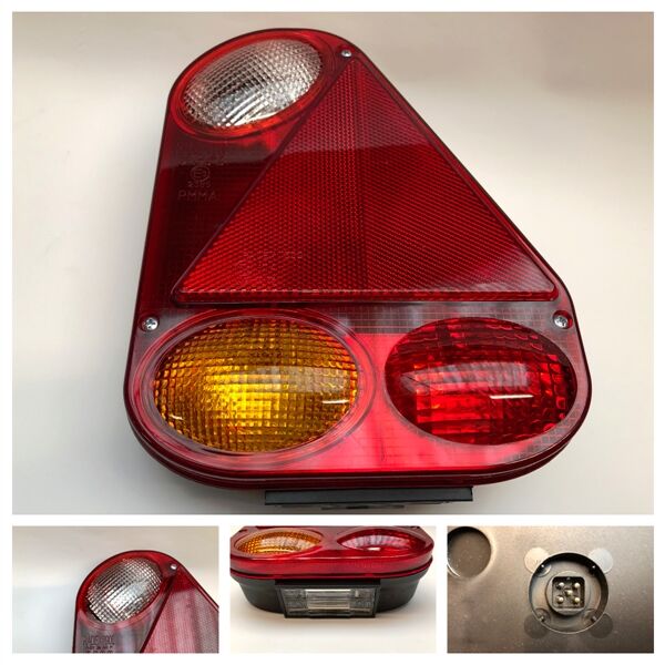 • Højre baglygte med bremselys, blinklys, baklys, baglys, nummerpladelys forneden og trekantrefleks