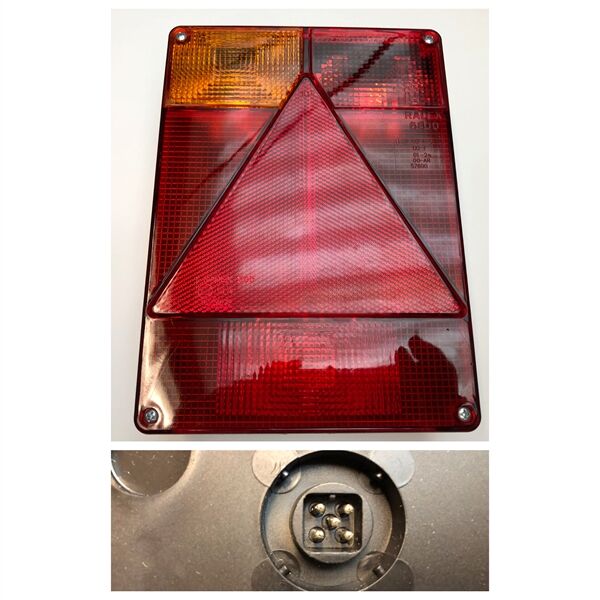 • Venstre baglygte med bremselys, blinklys, baglys, tågelys og trekantrefleks