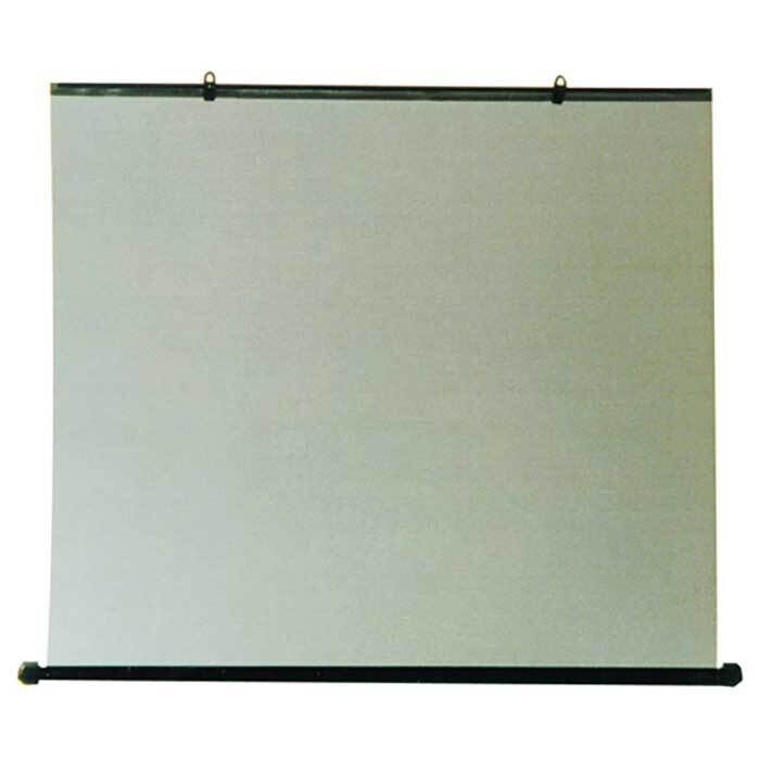 Inkl. to stk. kroge, som gardinet hægtes på, når det er rullet ud.