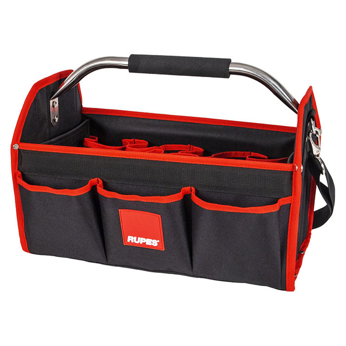 RUPES-flaskeholder er den perfekte løsning til at bære polermiddelflasker og andre genstande, du har brug for når du arbejder. Denne taske indeholder 8 indvendige hovedrum samt 6 sidelommer til tilbehør.