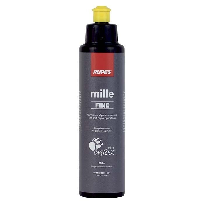 BigFoot poleringsmidler til geardrevne poleringsmaskiner, er specielt designet til brug med LK900 Mille geardrevne polermaskiner. Rupes Mille ”Fine” er formuleret til at fjerne fine hvirvler og ridser, og bruges efter Mille Grov-blandingen til at færdiggøre malingsperfektion og skabe en overflade, der er klar til at blive beskyttet.