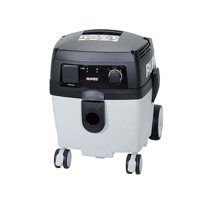 Denne 30 liters professionelle støvsuger med elektrisk tilslutning fra Rupes, er ekstremt lydløs. Det er en mobil enhed til udsugning af støv under slibning og forskellige typer industrielt arbejde, som også er velegnet til væskeudsugning. Den har et SCS selvrensende system med filterpatroner (Rupes patent), og MIC multifunktionel intelligent kontrol, som giver mulighed for manuel eller automatisk opstartshastighedskontrol med LED-meddelelse ”serviceinterval” til udskiftning af motorbørster. Maskinen har 2 panelfiltre for fremragende filtreringskapacitet og en elektrostatisk opladningsenhed. Den har en høj kapacitets tank til støv og væske med plads til 30 liter, og et drejeligt frontstik til slanger med diameter 25 - 29 - 38 - 50 mm.