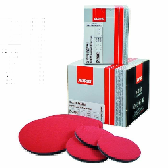 Rupes slibeskiver med X-Cut skum er designet til vådslibning og slibning på konturer eller afrundede kanter. De skaber en enestående finish uden dybe ridser, der kræver reducerede blandings- og poleringstrin, og som let kan poleres til højglans.