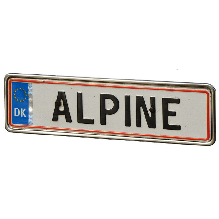 Nummerplade i poleret rustfrit stål. Eksklusivt design. Skrues fast sammen med nummerplade, så den opfylder de nye krav til tyverisikring (skruer medfølger ikke) Leveres pakket i 1 styks blister med tophænger.
