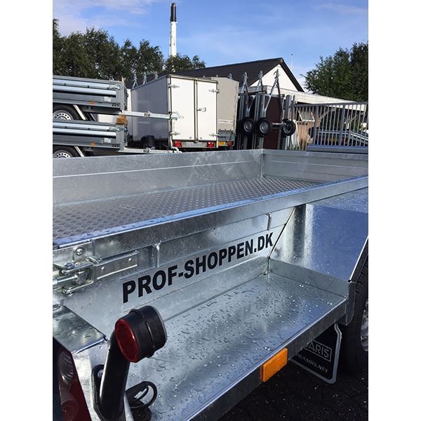 Med denne trailer får du hele 2260 kg. nyttelast og stort ladmål, hvilket giver dig uanede fragtmuligheder. Med surringsøjerne er fastspændingen af godset let som en leg, og skal du fragte uhåndterbare objekter, er du sikret, de ikke skrider rundt på ladet grundet den skridsikre bund. Rampernes vinkel er på kun 16°, hvilket gør det nemt at køre evt. maskiner op på ladet!